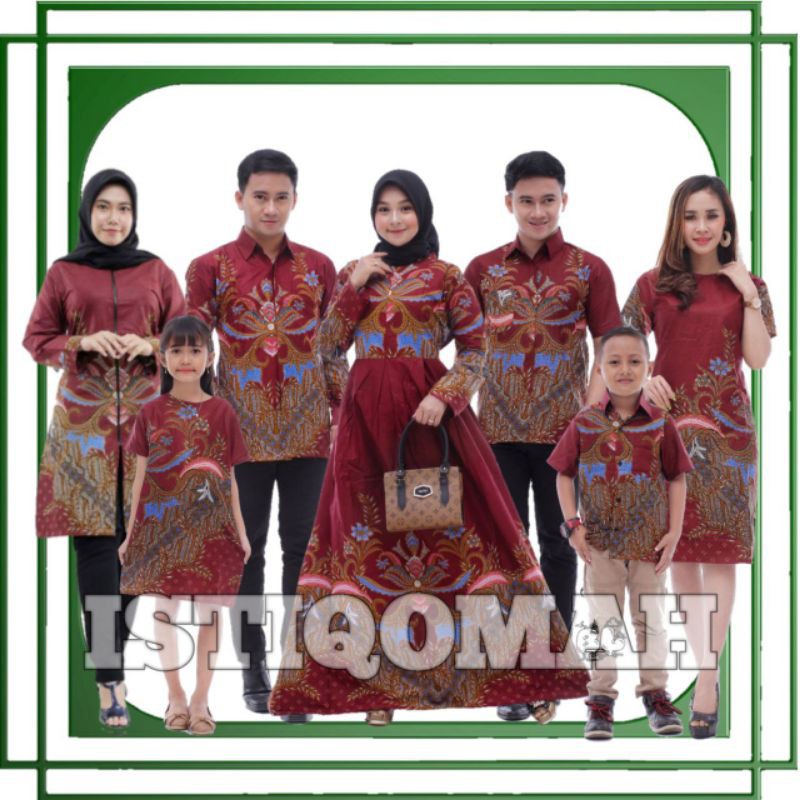 Grosir Pakaian W di Kota Kendari Set Batik Couple Keluarga Sania Ruffle Ori Ndoro Jowi Dnt Mahkota Marun dari Istiqomah Batik Kota Pekalongan