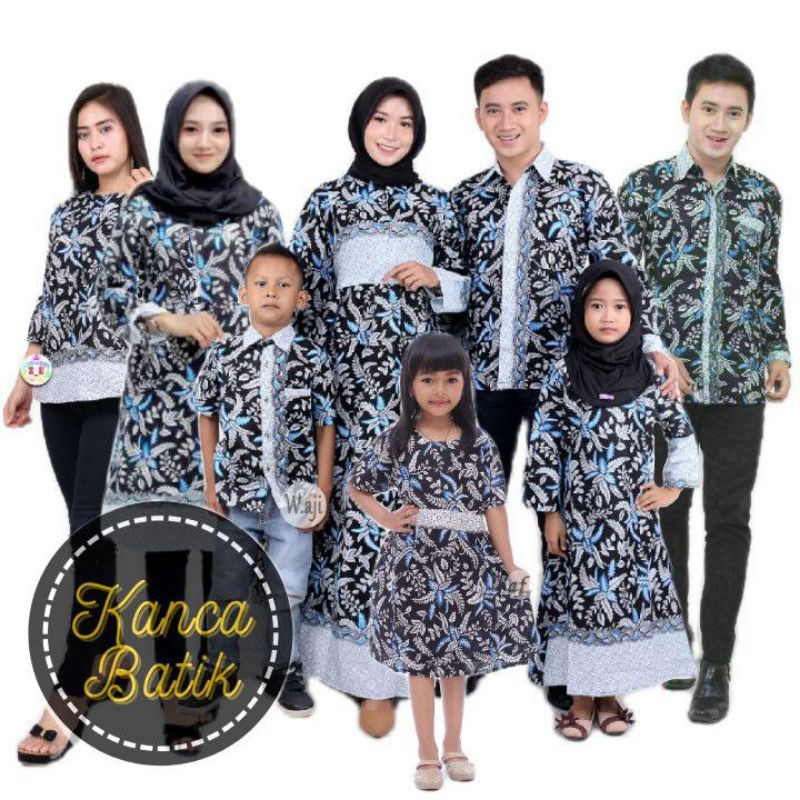 Sale Pakaian W di Kabupaten Sigi Promo Batik Couple Keluarga Sarimbit Sania Ruffle Batik Ori Ndoro Jowi Motif Blarak Biru dari Kanca Batik Pekalongan Kota Pekalongan