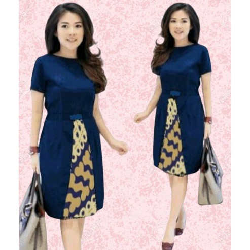 Name: Dresswanita Dress Wanita Kombinasi Batik Navy Bahan Twiscone Murah Meriah Uhn76
